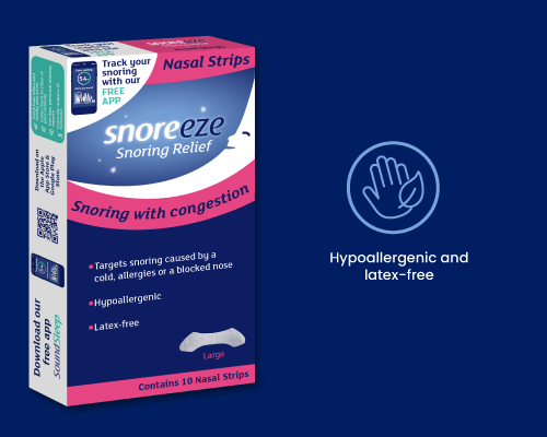 Snoreeze Nasal Strips gently open the nasal passages to improve airflow throughout the night.